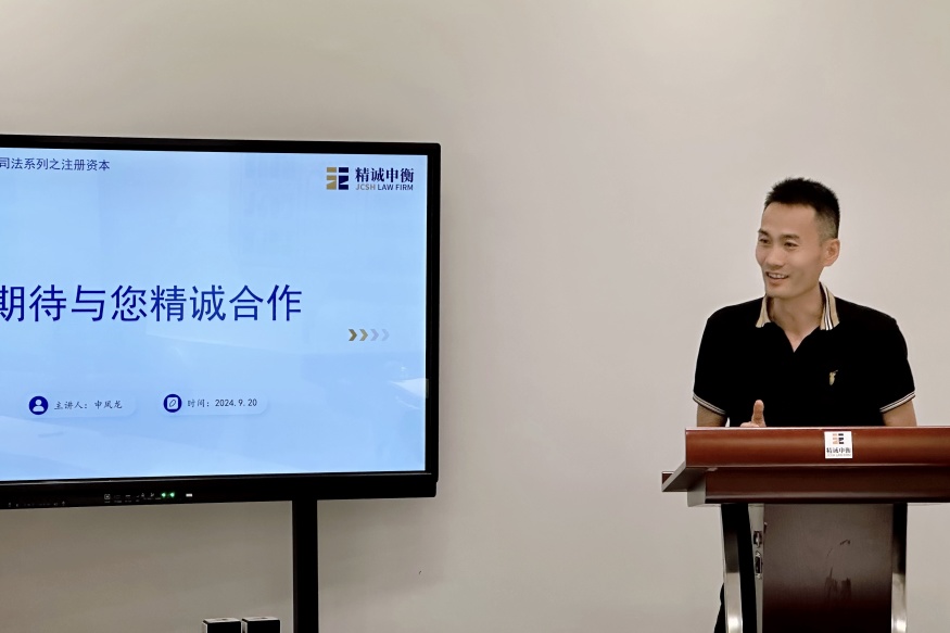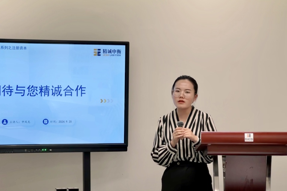 2024年9月20日,上海精诚申衡律师事务所第三十八期“精诚讲堂”圆满开展。本次讲堂由我所申凤龙律师主讲,围绕“企业家应当知晓的《公司法》之注册资本”主题,高级合伙人杨永伟律师主持,熊丽律师、杨虎律师和李玲律师与谈,合伙人杨爱东律师进行总点评。