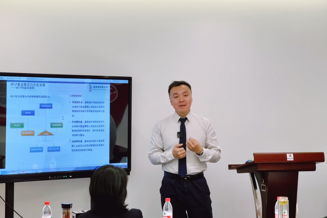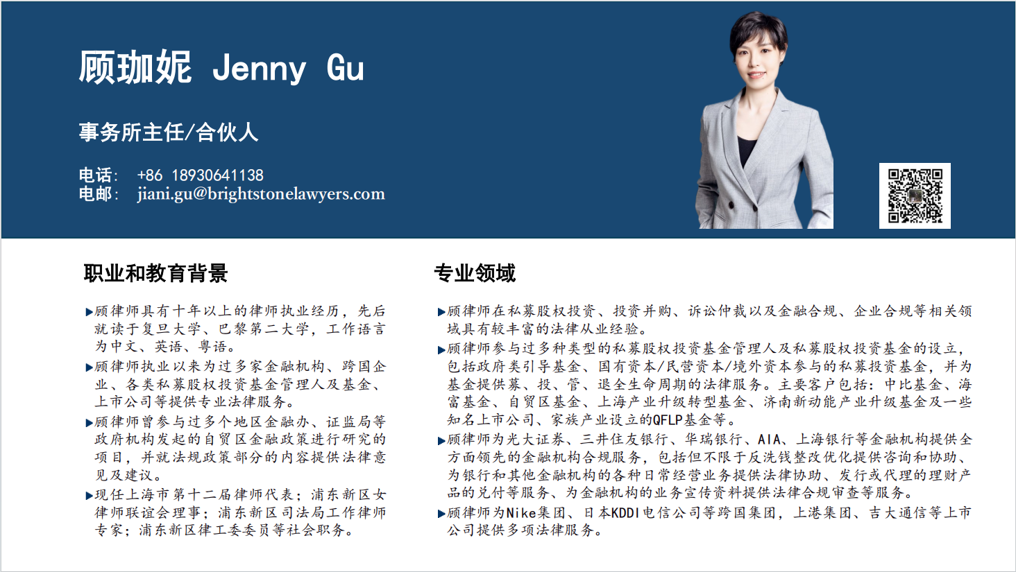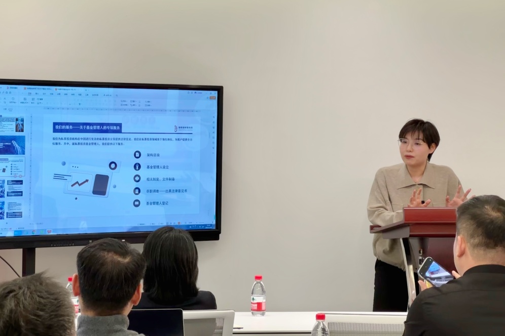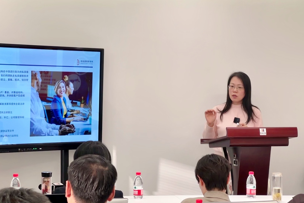 顾珈妮主任主要分享了磐明律师所关于私募基金的一些介绍,包括 QFLP 基金概览与历史发展、QFLP 的基本架构、为基金管理人提供的专项服务(如架构咨询、基金管理人设立、相关制度和文件制备、尽职调查、基金管理人登记等)、私募基金的专项服务流程(基金架构咨询、募集、设立、备案、投资、投后管理、投资退出、基金清算等)、团队私募基金投资项目以及我国私募基金行业发展历程等信息。