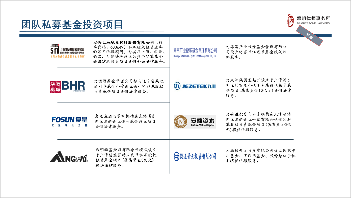 私募股权投资:涉及尽职调查、交易文件起草、股东协议等。尽职调查包括法律、业务和财务层面的调查,确保投资标的合法合规。