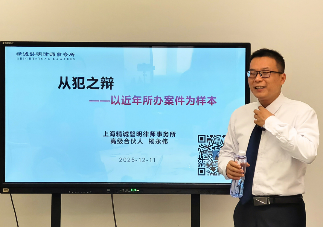 2025年12月11日,上海精诚磐明律师事务所「精诚讲堂」第90期,杨永伟律师作《从犯之辩》专题分享,诸荟嘉律师主持,徐相老师作心得分享,申凤龙律师、宋天峰律师为与谈人。