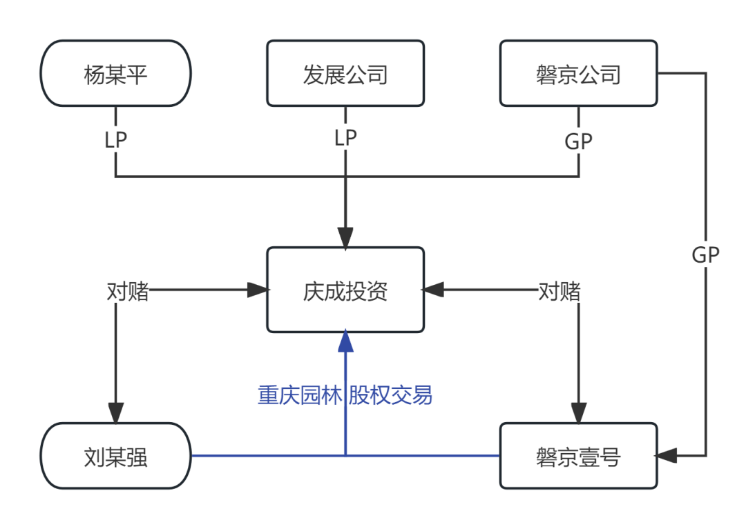 2016年,宁波梅山保税港区磐京壹号股权投资管理合伙企业(有限合伙)(下称磐京壹号,磐京公司是磐京壹号的普通合伙人、执行事务合伙人)与庆成投资签订《重庆市园林建筑工程(集团)股份有限公司(下称重庆园林公司)之股份转让协议》,约定庆成投资以7元/股的价格受让磐京壹号持有的重庆园林公司5702289股股份(占重庆园林公司注册资本的3.46%),转让总价为39916023元。