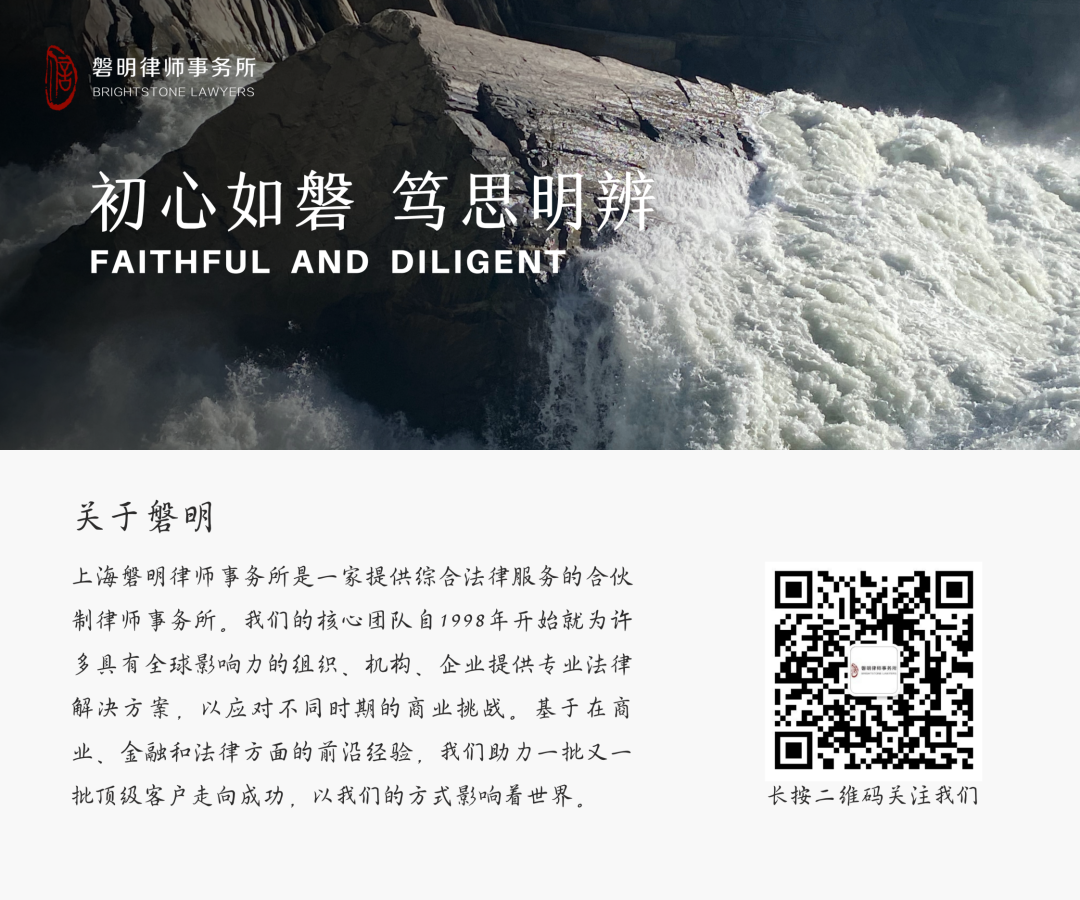 免责声明:本文及其内容本材料是为提供一般信息的用途编制,并非旨在成为可依赖的法律意见,不代表磐明律师事务所对有关问题的法律意见。同时我们并不保证将会在发表之后继续对有关内容进行更新,不建议您依据本文中的全部或部分内容而进行任何决策。如您需相关方面专业意见,建议您与具有相关资格的专业人士进一步沟通。